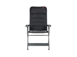 Een zeer luxe standenstoel. Deze stoel biedt maximaal comfort door de in 7 standen verstelbare rugleuning en de gepolsterde 3D stof. De comfortabele vulling van deze stof is extra luchtdoorlatend en houdt door de open celstructuur geen vocht vast. Hierdoor is de stoel veel sneller droog dan stoelen met een traditionele schuimvulling. Daarnaast zijn zowel de rugleuning, de zitting en de armleggers ergonomisch gevormd. De stoel is voorzien van een geanodiseerd H-frame voor extra stabiliteit en stevigheid. De stoel heeft een brede (50 cm) en een diepe (43 cm) zit. Een zithoogte van 48 cm en een ruglengte van 81 cm. Ingeklapt is deze stoel zeer compact en daardoor gemakkelijk mee te nemen (lxbxh: 113x67x7,5 cm). Maximale belasting: 140 kilogram.