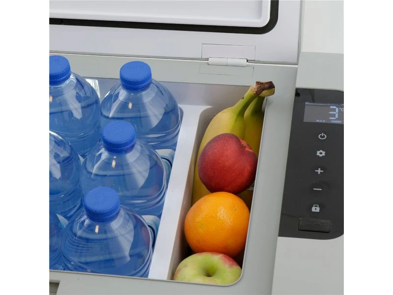 Deze compressorkoelbox van Mestic heeft een zeer krachtig koelvermogen en lijkt qua functioneren op de koelkast zoals u die thuis gewend bent. Hij heeft een koelvermogen van +10 °C tot -18 °C. Dat betekent dus dat u hem zelfs als vriezer kunt gebruiken. U kunt de gewenste temperatuur eenvoudig instellen op het touch LCD-display van de box. De omgevingstemperatuur heeft geen enkele invloed op de koelprestaties van deze koelbox, dus u kunt altijd lekker bij de camper of caravan genieten van een verkoelend ijsje! Deze koelbox heeft hetzelfde koelvermogen op 12 V als op 230 V. U kunt hem dus in de auto gebruiken, maar ook aansluiten op een stopcontact. Hiervoor heeft u wel de bijbehorende adapter nodig.